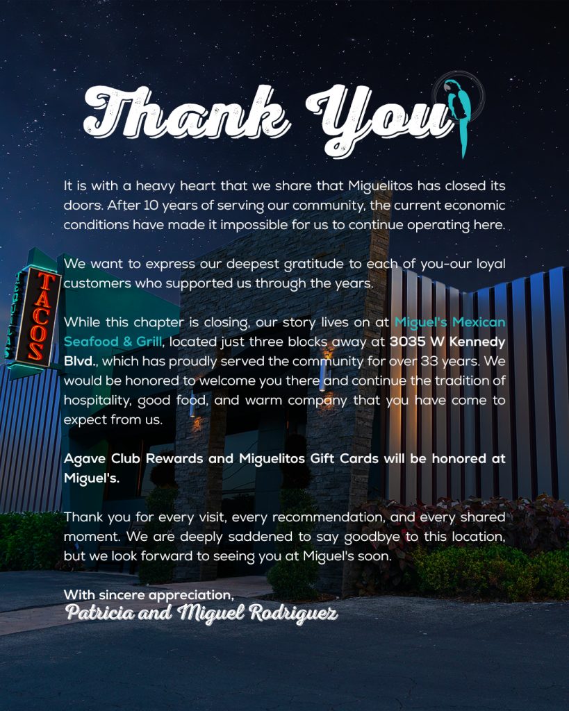 VISIT US AT MIGUEL’S MEXICAN SEAFOOD & GRILL